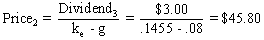 5. A stock is expected to pay no dividends for the next two years. The dividend in Year 3 is expected to be $3.00 and will grow at a constant rate of 8 percent a year thereafter. The risk-free rate of return is 3 percent, the market return is 11.25 percent, and the stock’s beta is 1.4. Assuming the stock is fairly priced, what is the current stock price?