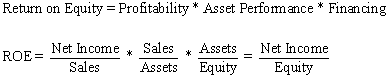 It should also be noted that a firm can only sustain a growth rate equal to the ROE adjusted for any dividend payouts. If dividends equal 25% of earnings for example, the firm is retaining the remaining 75% for investment in the firm. Multiplying the ROE times this "retention percentage" provides a measure of the growth that the firm can afford given its management of the three metrics noted above. The implied assumption is made that the firm will continue to finance itself as indicated by the existing assets over equity metric which indicates that any debt strategies now used will also be employed in the future. If the firm were to choose not to expand its borrowings, its level of manageable growth would be limited to ( net income * retention %)/assets.